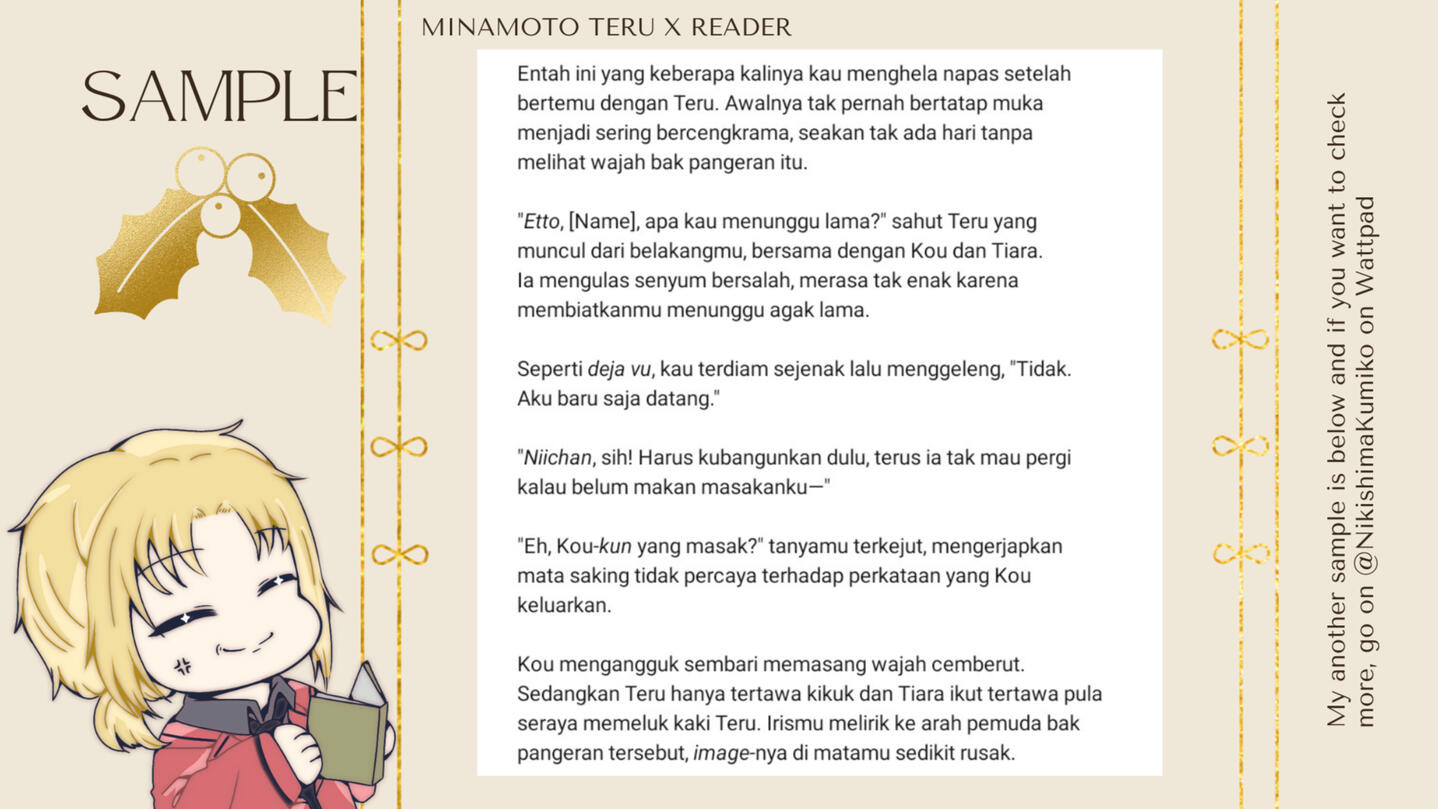 Contoh buku mengenai Fanfiction Minamoto Teru dari Jibako Shounen Hanako-kun, klik di bawah!